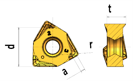 Двухсторонняя пластина с 6 режущими кромками для фрезы R90WN04