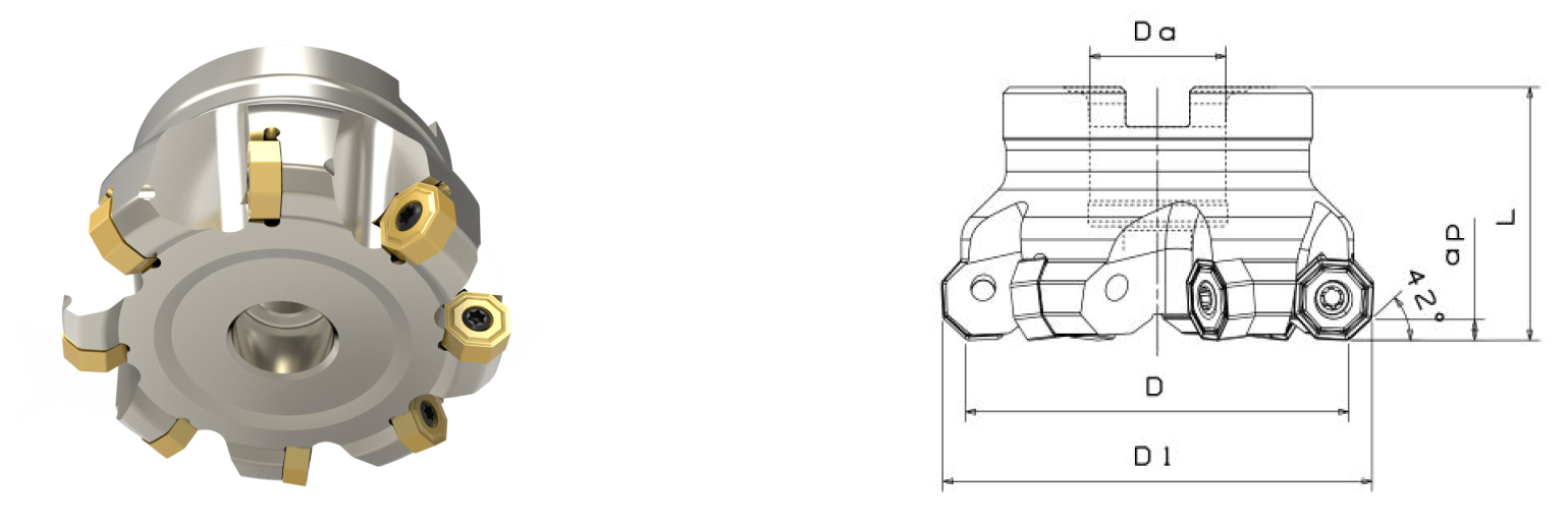 Фреза с углом в плане 42°, для обработки плоскости, для пластин ONGU.