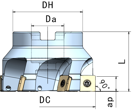 Фреза с углом в плане 90°, для обработки уступов, для пластин SDKT.